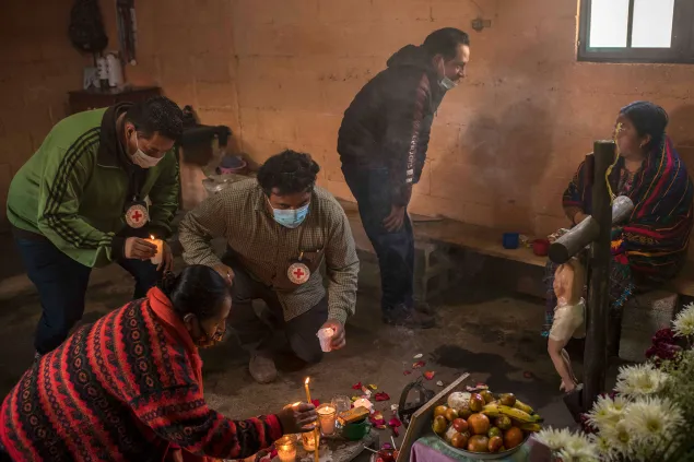 ICRC staff, Luis Pedro Dominguez Gonzalez and Erick Raul Garcia Quinones, attend the honouring of Encarnación Apen Curruchic, who went missing in 1982 when he was 18 due to the Guatemalan armed conflict. His remains were never found.