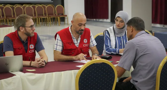 The complex process of rebuilding lives began as news of the ceasefire on 7 August 2022 spread. A key first step to enabling the path to recovery and preventing further injuries was addressing the immediate danger of Unexploded Ordnance (UXO) – unexploded bombs and other ammunition which failed to explode and still poses a lethal risk of detonation. Staff and volunteers of the ICRC and Palestine Red Crescent Society (PRCS) began by visiting affected communities to identify risks, sensitize communities on the risks of UXO and what they can do to avoid it.