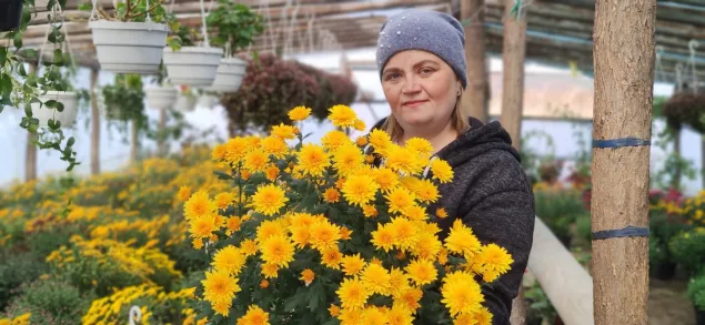 Oksana and Kostiantyn will keep selling chrysanthemums for about a month. They say they bloom long and sell well: "People buy them for flowerbeds, verandas, balconies, or simply as gifts. When nature loses its colours, when it's cold and sad, chrysanthemums are like small suns in flowerpots: they cheer you up and make you happy."