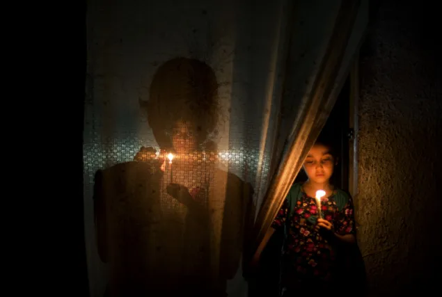 Palestinian children light candles during a power outage as Gaza suffers from daily power cuts for an average of 20 hours a day.