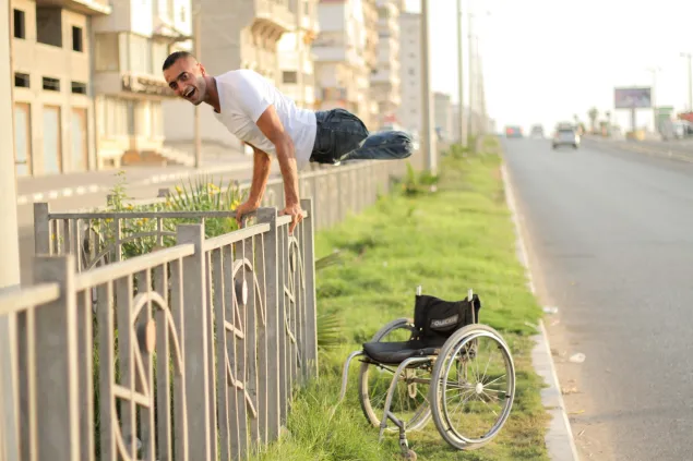 Osama is a young man who lost his legs. He went through tough times for a while until he decided to play sports and challenge his disability. This required strong determination and an ironclad will.