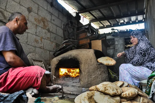 On a hot summer day, and despite continued power outages, parents bake fresh bread for their children to fulfil their basic needs.