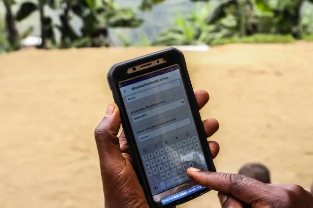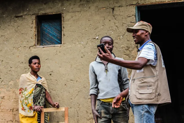 Red Cross volunteer Fikiri takes his digital tablet from village to village in eastern DRC, helping family members reconnect after conflict has torn them apart.