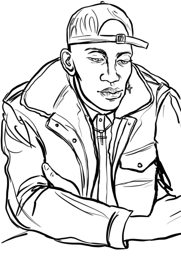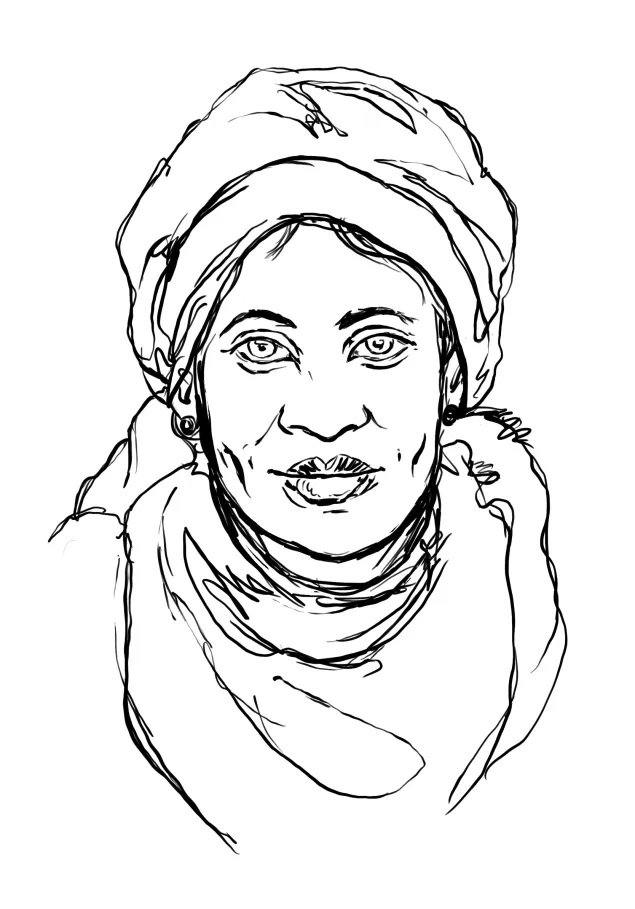 Nurah works for a humanitarian organization. Homeless and undocumented for a long time, she is now giving back to others the help that she received. Egged on by her compatriots, she allows her portrait to be drawn. “Make sure you bring out my dimples!” she says. Beauty speaks for itself.