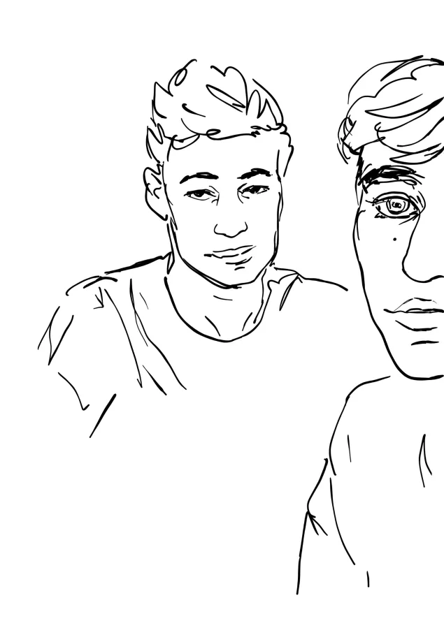 Mounir is 16 years old. He wants to show he is also talented and asks for a pencil and paper. From his mind’s eye, he draws the face of a girl with long eyelashes. “Is that your sweetheart?” his compatriots ask laughingly. He laughs too. Does she really exist? Will he find her again? Is she waiting for him?