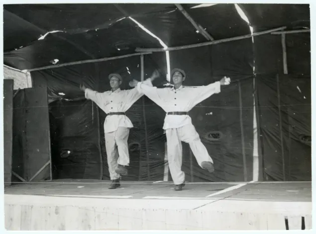 Two PoWs put on a Russian-style dance performance at the Geoje camp in June 1951.