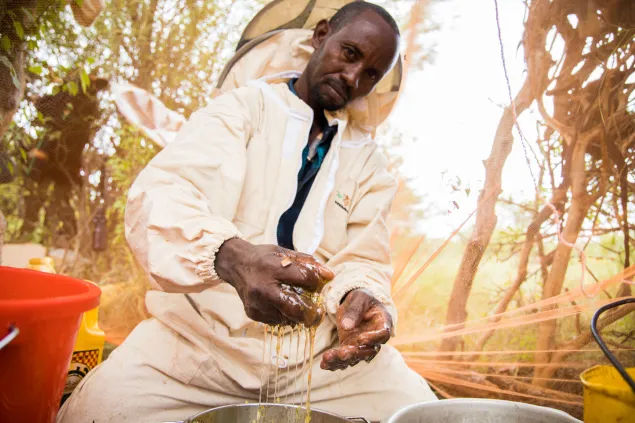 Mohamed keeps a total of 67 hives in his farm in Usbello in Huddur. Half of them are co-owned with members of the cooperative.