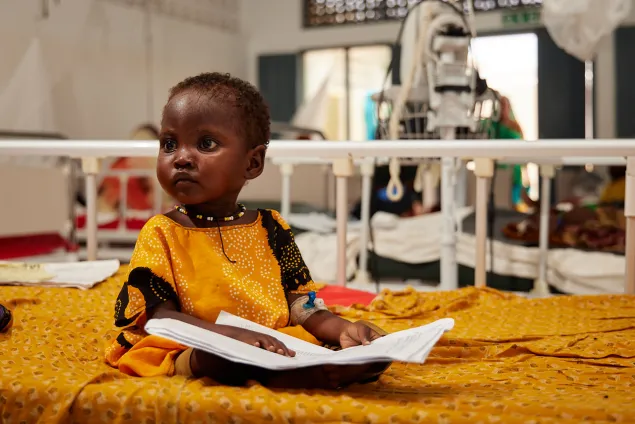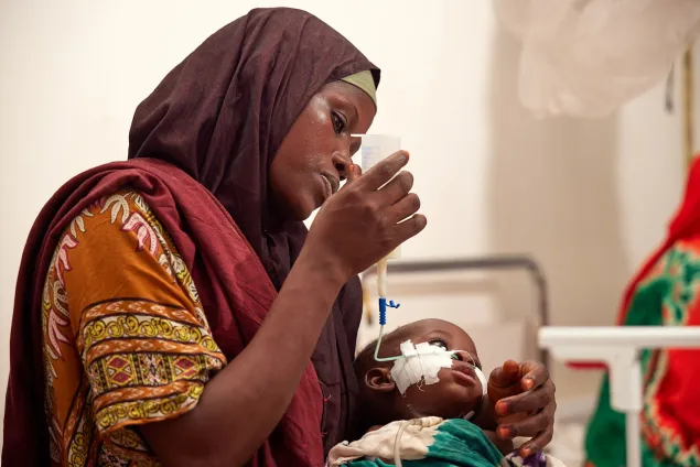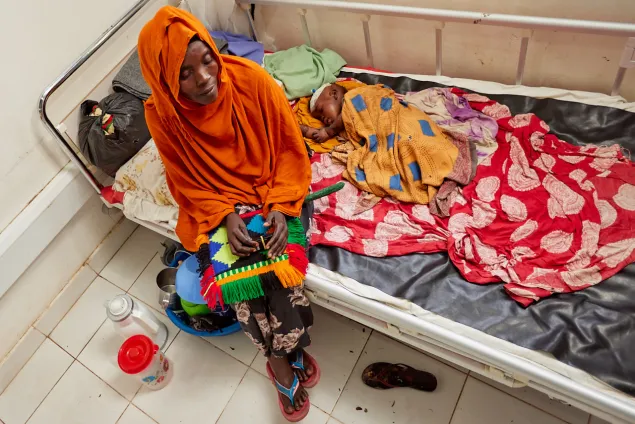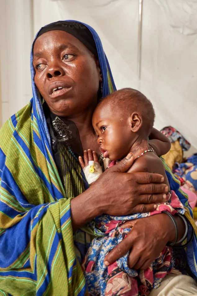 Faadumo Ali watches over her two-year-old daughter as she sleeps at the intensive care unit (ICU) of the Kismayo General Hospital stabilization centre. They have been here for just over a week and her daughter is responding well to the treatment. When she came in, her whole body was swollen, a tell-tale symptom of a condition called oedema which is as result of fluid retention.