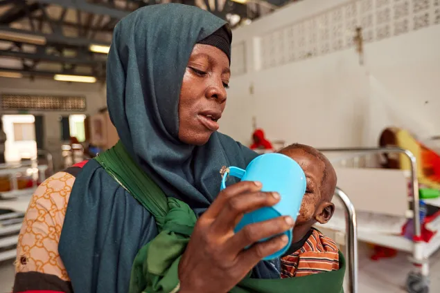 “I brought my daughter here and she was all swollen. I'm staying with her, and she is getting treatment. She is still a bit tired, but the swelling is not as bad as it was,” says Faadumo while seated with her daughter in the ICU wing of the stabilization centre.