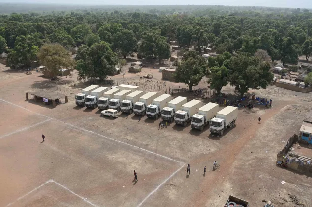 ICRC trucks loaded with humanitarian aid arrive in Boro Medina just before the distribution. This emergency assistance will support families as they seek new sources of income and try to rebuild their lives.