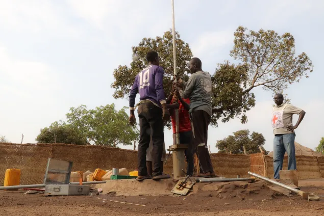 In Boro Medina, the influx of refugees and returnees escaping the conflict in Sudan has heightened the challenge of accessing clean water. The ICRC worked with trained community members to repair hand pumps. Together,. Together, they repaired eight b