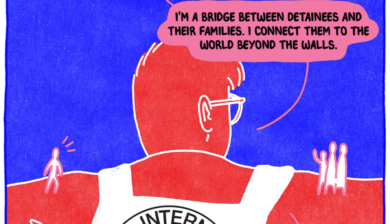 Speech bubble 2 - I'm a bridge between detainees and their families. I connect them to the world beyond the walls.