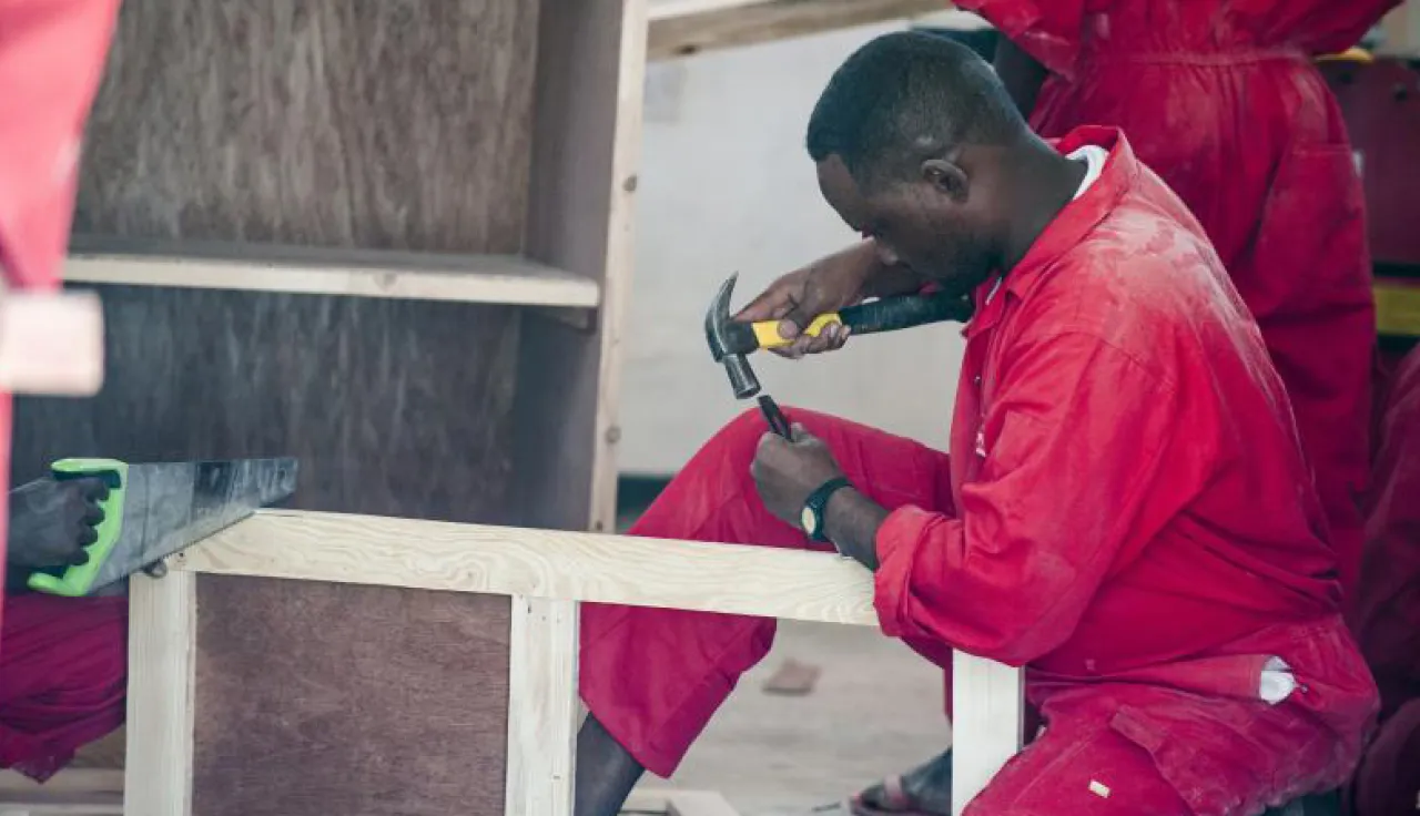 وفي الوقت الحالي، يوجد ستون محتجزًا ومحتجزة ضمن الفصول التدريبية المهنية التي تستمر مدة ستة أشهر. ويعرض محمد أمام زائريه ثمرة المهارات الجديدة التي اكتسبها في مجال النجارة: منضدة وكرسيًا.
