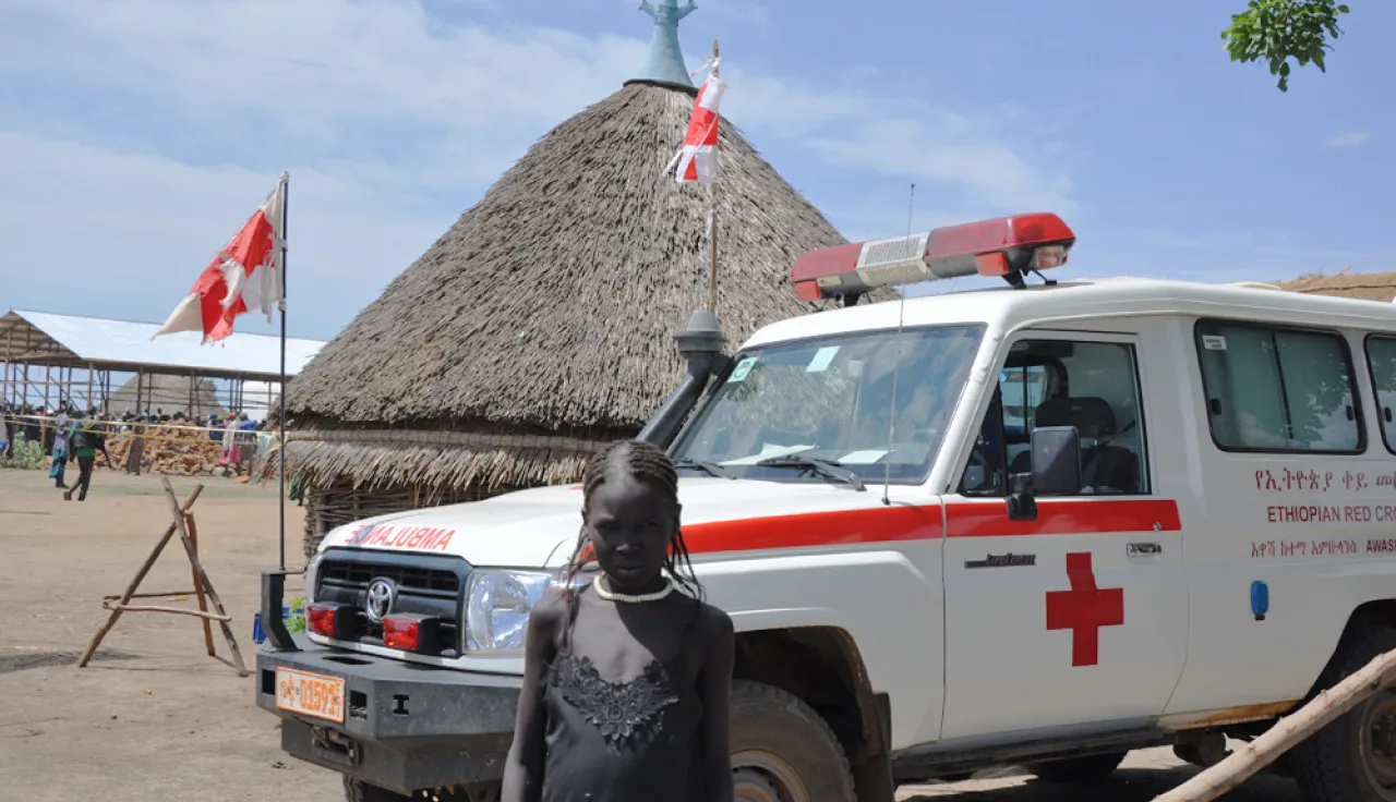 وتعمل جمعية الصليب الأحمر الإثيوبي واللجنة الدولية للصليب الأحمر والاتحاد الدولي لجمعيات الصليب الأحمر والهلال الأحمر والصليب الأحمر السويسري معاً من أجل تحسين سُبل حصول اللاجئين القادمين من جنوب السودان على الرعاية الصحية والمياه النظيفة فضلاً عن نشر وتعزيز الممارسات الصحية السليمة لدى هؤلاء اللاجئين.