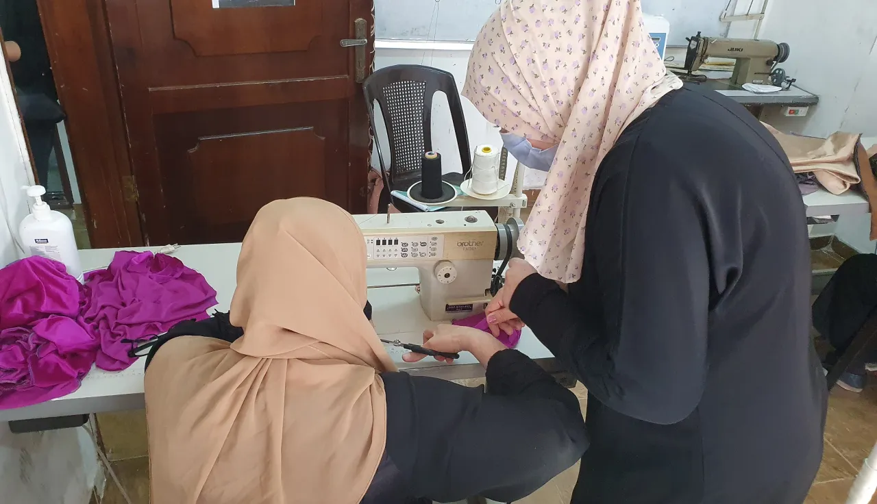 "أنا ممتنة لهذه الفرصة التي سمحت لي بتحسين مهاراتي في الخياطة، ذلك أن النساء اليوم تحتاج أيضًا إلى دعم دخل الأسرة – وتواصل بسمة. "تعلمت في المركز كيفية استخدام آلة الخياطة الصناعية ويمكنني الآن صنع ملابس الأطفال التي أبيعها عبر تطبيق واتساب وأكسب بعض المال لأعيل نفسي وابنتي".