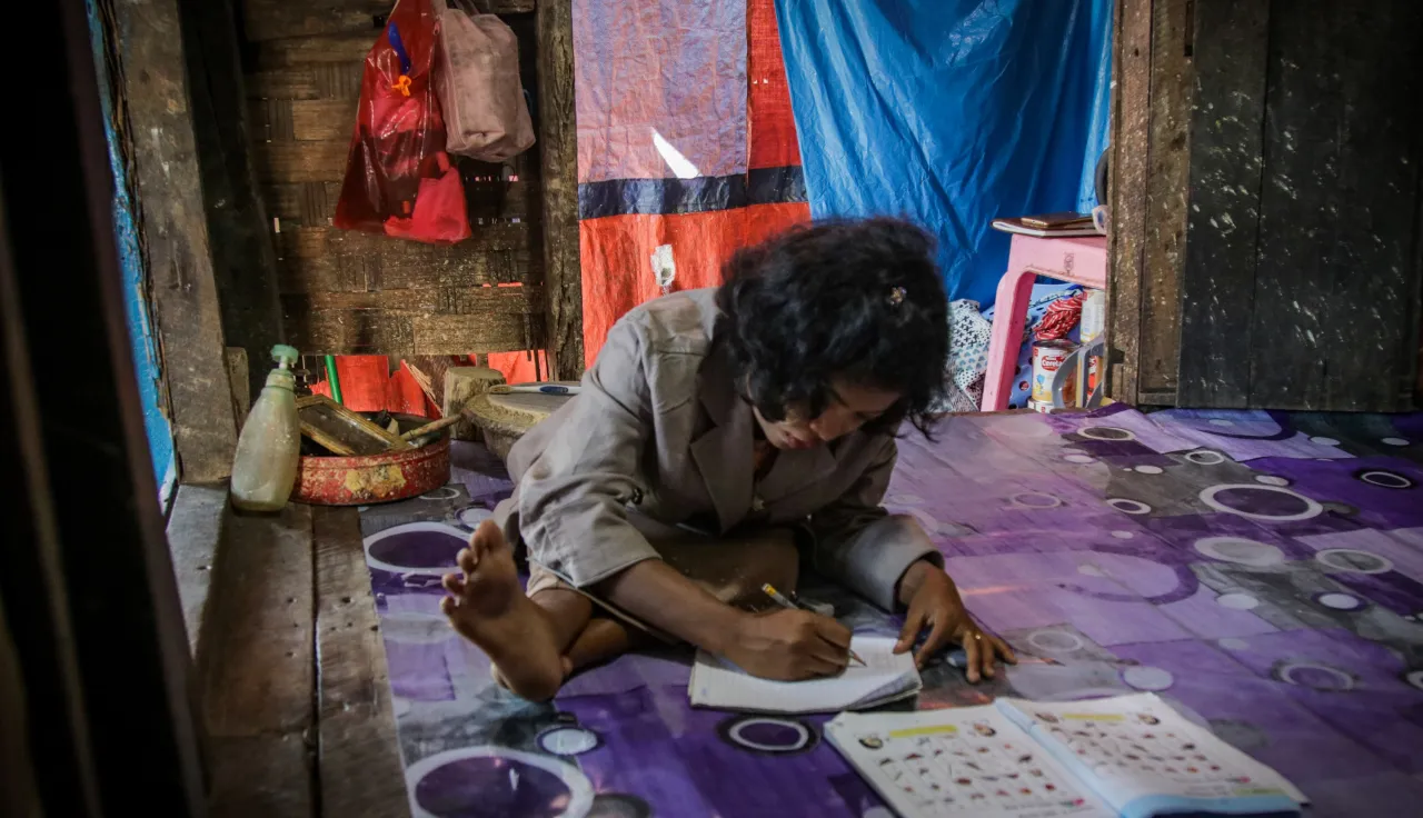 ومع أن الحياة لم تكن سلسة، إلا أنها لم تر إعاقتها نقطة ضعف. لم تتمكن من الذهاب إلى المدرسة مثل الأطفال الآخرين، لكنها علّمت نفسها بعض العمليات الحسابية البسيطة وكيفية كتابة اسمها. لعلها لا تتمكن من الخروج والعمل لدعم أسرتها، لكنها تساعد والدتها في الطهي بالمنزل.