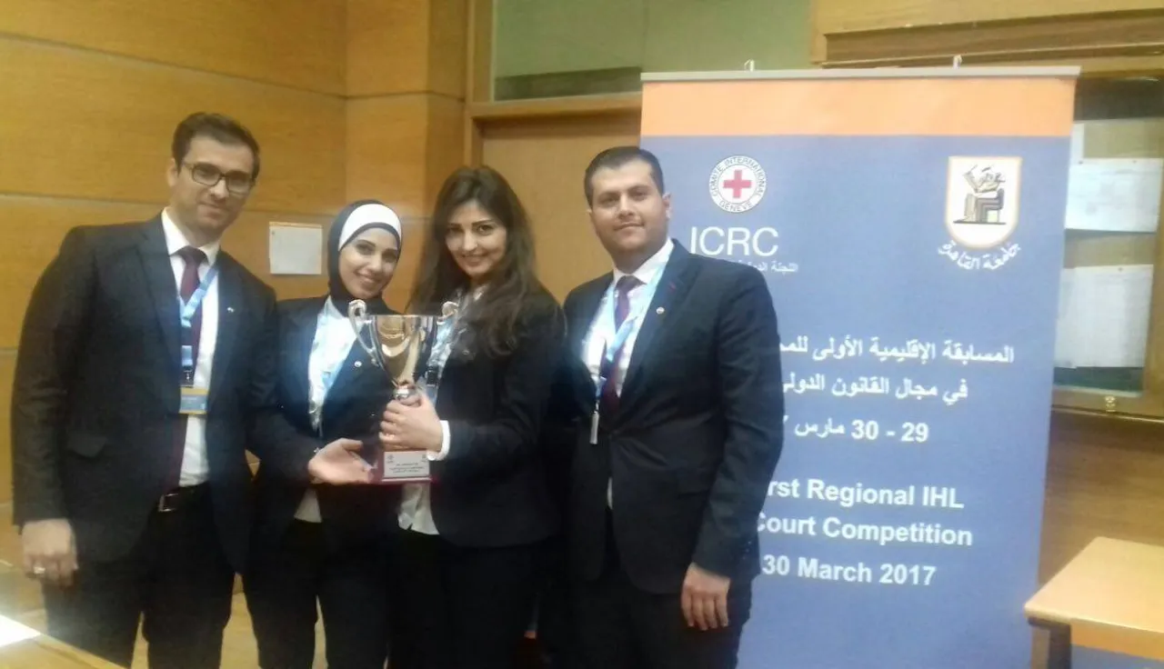 فاز فريق جامعة دمشق، كلية الحقوق بالمرتبة الأولى في المسابقة الاقليمية لطلاب الجامعات العربية حول القانون الدولي الانساني والتي نظمتها اللجنة الدولية للصليب الأحمر في القاهرة ، مصر، في ال 29 و 30 من آذار 2017.