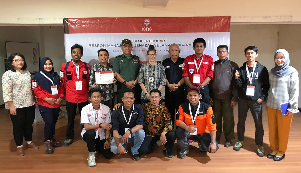 في 26 شباط/فبراير، التقى 16 شخص من مختلف المنظمات في مدينة بالو في المنطقة المنكوبة، وكانوا قد أتوا إلى المنطقة خلال الأيام الأولى بعد وقوع الزلزال. تبادلوا خبراتهم في مناقشة طاولة مستديرة نظمتها اللجنة الدولية للصليب الأحمر (اللجنة الدولية) وركزت على موضوع إدارة الجثث.