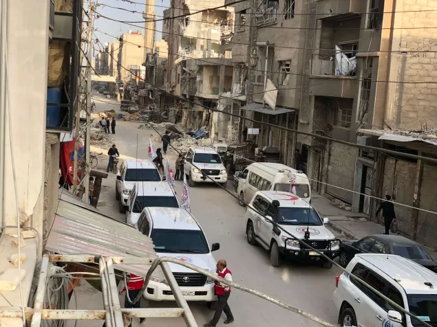 وقال المدير الإقليمي لمنطقة الشرق الأوسط باللجنة الدولية، السيد "روبير مارديني": "هذه القافلة خطوة إيجابية أولى لتخفيف المعاناة التي يئن تحت وطأتها بعض المدنيين حاليًا في منطقة الغوطة الشرقية، لكن قافلة واحدة، مهما كبر حجمها، لن تكفي، بالنظر إلى ما يعانيه السكان هناك من ظروف مأساوية ونقص في الإمدادات. إن تكرار دخول المساعدات الإنسانية واستمرار تدفقها مسألةٌ ضرورية، ويجب السماح بالمزيد منها في الفترة المقبلة."