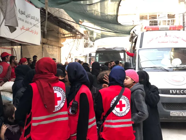 لطالما نادت اللجنة الدولية للصليب الأحمر على كل الأطراف في سورية لحماية قوانين الحرب التي لطالما تم إغفالها. ونعيد اليوم ونطالب كل أطراف النزاع بتحييد وحماية المدنيين.