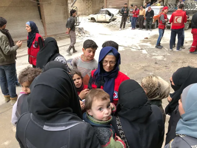 استطاع فريقنا مؤخرًا من الدخول إلى الغوطة الشرقية لإيصال المساعدات في الخامس من أذار/ مارس 2018. حيث كان أخر دخول للجنة الدولية في تشرين الثاني/ نوفمبر 2017.