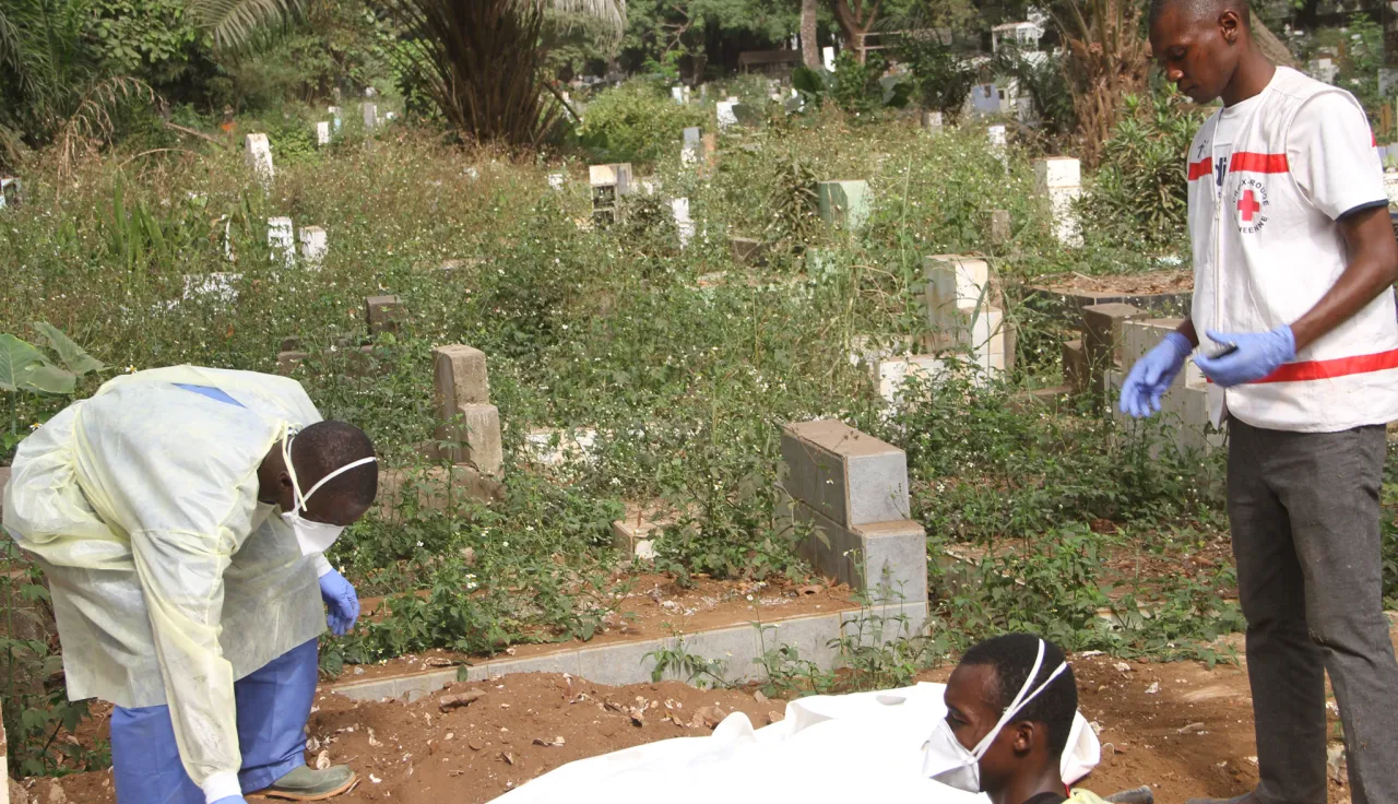 يندرج دور اللجنة الدولية في مكافحة فيروس الإيبولا في غينيا، كما هي الحال في أماكن أخرى من العالم في إطار الجهود التي تبذلها الحركة الدولية للصليب الأحمر والهلال الأحمر. فمنذ بداية الأزمة، عملت اللجنة الدولية إلى جانب الصليب الأحمر لغينيا وقدمت له الدعم المادي والمالي لتدريب نحو 300 متطوع على تدابير الوقاية من المرض وتطهير أماكن السكنى وإدارة عمليات الدفن بطريقة كريمة وآمنة. وفي مواجهة العثرات الأمنية، دربت اللجنة الدولية أيضًا عدة مئات من المتطوعين على تحديد المخاطر والاستعداد لها وإدارتها لا سيما المخاوف والمفاهيم المغلوطة المرتبطة بهذا المرض من أجل تحسين فرص الوصول إلى الضحايا وأيضًا على كيفية الحفاظ على سلامتهم.