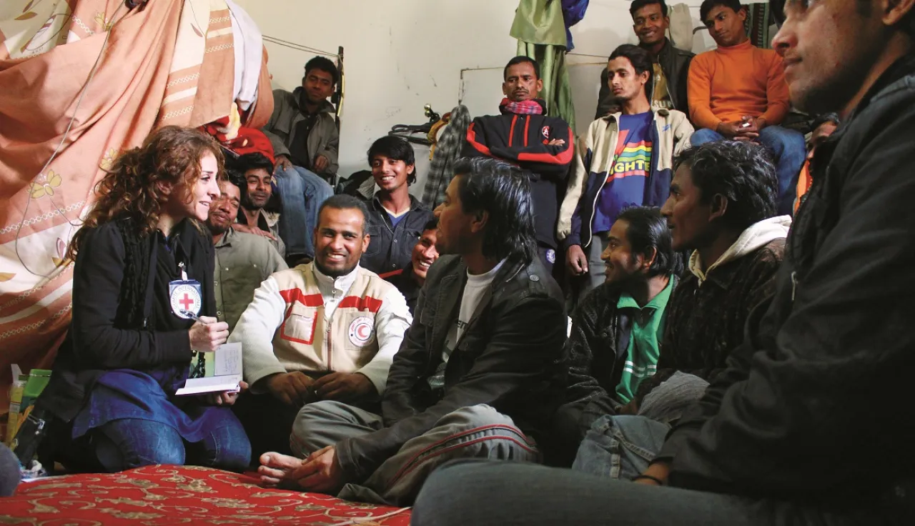 تسعى اللجنة الدولية إلى ضمان أن تفيَ الدول بما عليها من التزامات بحماية أرواح المهاجرين الضعفاء وصون كرامتهم وتخفيف معاناتهم. وتحقيقًا لهذه الغاية، نخاطب جميع السلطات المعنية بطريقة مباشرة وسرية. كما نحاول إذكاء الوعي بالقانون الدولي الإنساني، وقانون حقوق الإنسان، وقانون اللاجئين، والقواعد والمعايير الأخرى المنطبقة، ونوجه الانتباه إلى المسائل التي تثير قلق المهاجرين. وسعيًا إلى زيادة فهم الهجرة والاستضعاف الذي يواجهه المهاجرون، نعزز أيضًا تبادل الخبرات مع المؤسسات البحثية. وتعتمد هذه التبادلات على خبرتنا الجمعية ونستخدم البحوث القائمة على الأدلة للمساهمة في المناقشة وتعميق تحليل هذه المسائل. وعلاوة على ذلك، نتخذ إجراءات من أجل مساعدة المهاجرين ومجتمعاتهم كي يصبحوا أكثر قدرة على الصمود. ونساعد على الحد من جوانب ضعفهم وتخفيف معاناتهم بإسداء المشورة وتقديم الدعم المادي.