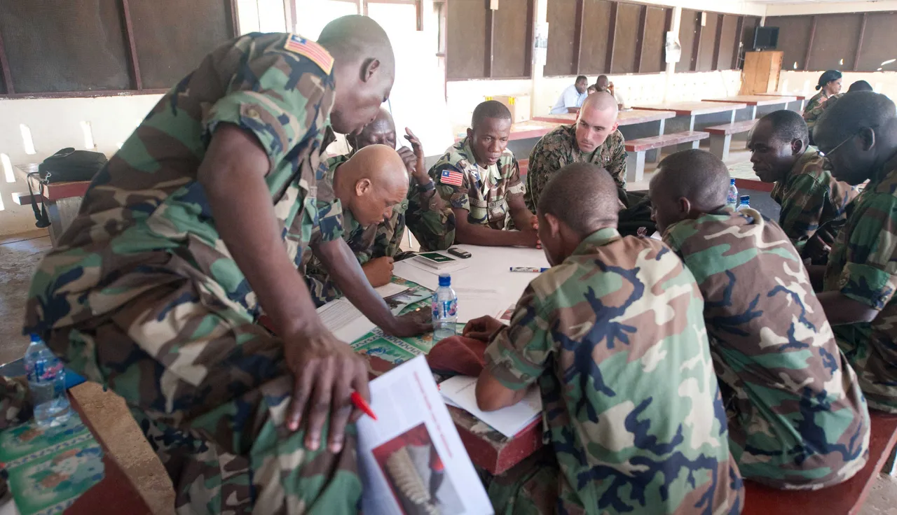 وكما جرت الأصول العسكرية الحقيقية، يبدأ نحو 20 ضابطا بالقوات المسلحة الليبيرية يومهم في ساعة مبكرة وقد اجتمعوا في مركز باركلي للتدريب بالمقر في مونروفيا. ومهمة الضباط التي عليهم إنجازها هي: صياغة مبادئ توجيهية جديدة من شأنها تعزيز القواعد القائمة وتسهيل عمل كل من الجيش والطواقم الطبية. ويوضح أحد الضباط النقيب غولافال الأمر قائلا: "ترتبط العمليات العسكرية والرعاية الصحية ارتباطا وثيقا. أحيانا نقول إن الأطباء والممرضين هم أفضل أصدقائنا. عندما ننفذ عملياتنا، نعلم أن علينا حمايتهم واحترامهم لأننا سنتعرض لإصابات ناجمة عن عملياتنا. هذه العلاقة مهمة جدا." ويضيف نيستر أوري، وهو مستشار قانوني باللجنة الدولية: "ما نقوم به [في حلقة العمل] اليوم سيكون له بالتأكيد تأثير على الأجيال القادمة."