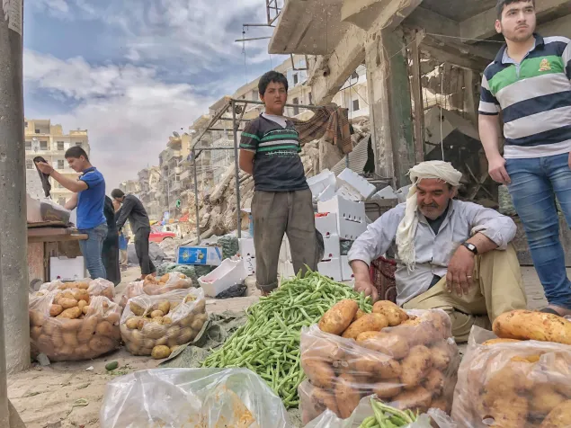 Die Menschen kehren nach Aleppo zurück, doch die Stadt ist gezeichnet von den jahrelangen Kämpfen. Viele haben kein regelmässiges Einkommen, denn Arbeitsplätze und Ressourcen sind Mangelware. Zerstörte Gebäude und Infrastrukturen sind nur eines der Probleme, mit denen die Menschen in Aleppo tagtäglich konfrontiert sind.