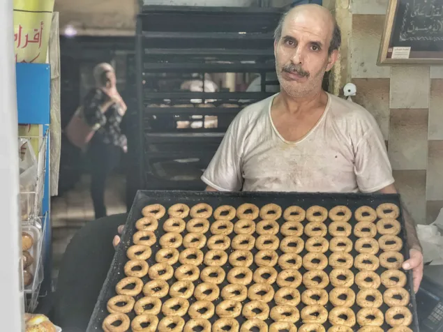 Während der jahrelangen Kämpfe musste Abu Ahmad seine Backstube in der Altstadt schliessen. Vor Kurzem konnte er sie wieder öffnen und verkauft nun die für den Ramadan typischen Süssigkeiten und Backwaren.