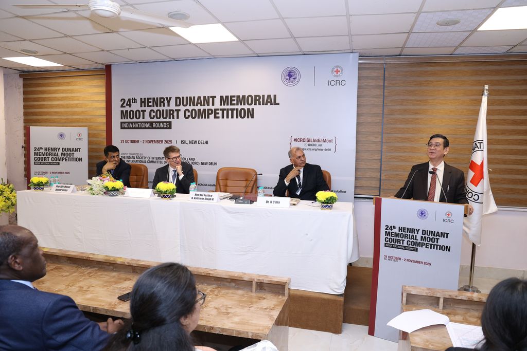 The Henry Dunant Moot Court Competition is organized annually by the ICRC in partnership with the Indian Society of International Law (ISIL) for law students to deepen their engagement with contemporary issues in IHL. The moot allows participants to work on realistic case scenarios, simulate courtroom proceedings, and build practical advocacy skills. Intensive preparation and participation help students strengthen their critical thinking, teamwork, and persuasive communication, with guidance and feedback from judges who are experienced practitioners and senior academics in the field of IHL.
