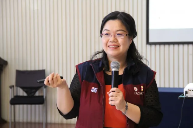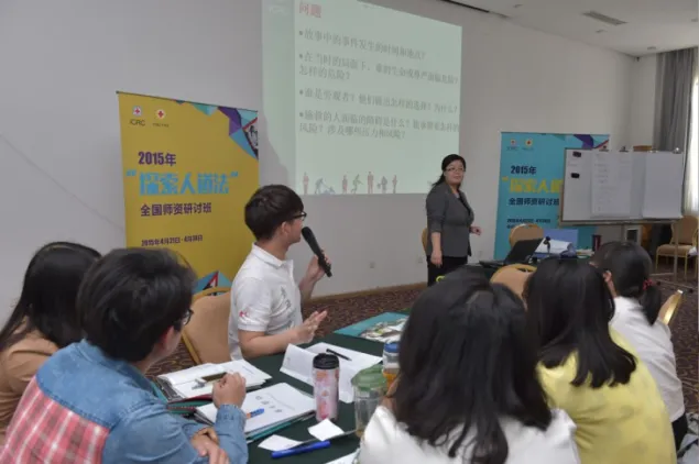 In 2015, Ms. Ye Yinghua was conducting a trainers' training on Exploring Humanitarian Law.