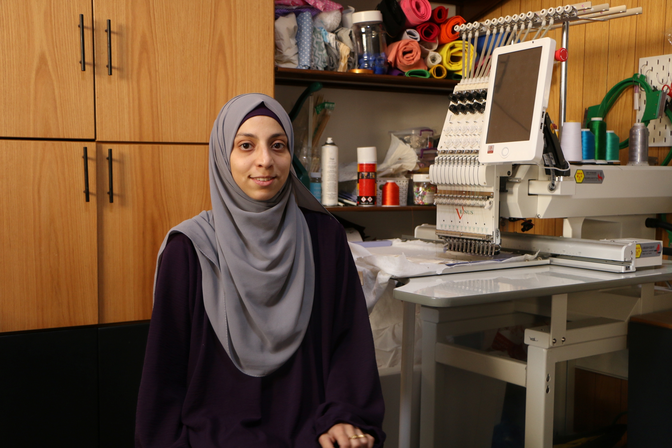 Haneen Nahawi, a resident of Hebron’s H2 area, is one such recipient. She started an embroidery business from her home. With the grant, she purchased a computer that enabled her to take her work to the next level.