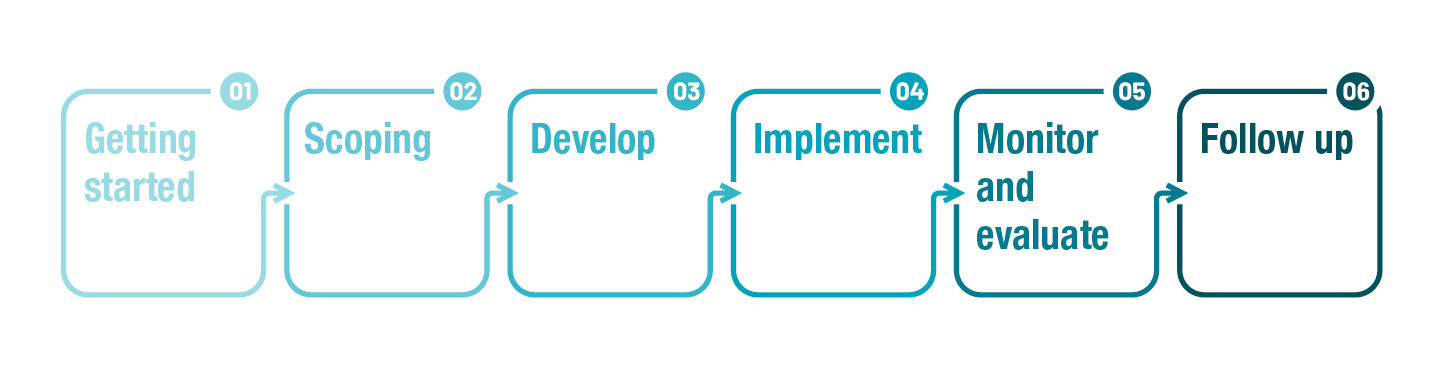 The Planning Process has 6 easy to carry out sections that take you from identifying the type of problem that needs to be addresses through to implementation and finally evaluation.