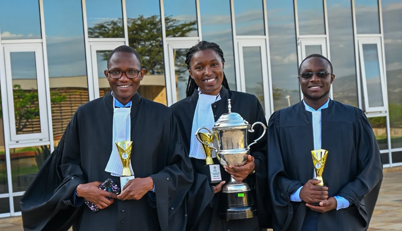 In the final round that took place in the courtroom of the United Nations International Residual Mechanism for Criminal Tribunals (IRMCT) – Arusha Branch, the students, while showcasing their knowledge of IHL, put up a spirited fight in arguing for the prosecution and defense to a bench consisting of legal experts from the ICRC, IRMTC, and African Court of Human and People's Rights (ACHPR). The winning team members were Gidius Kato, Juliana Nyangweso, and Victor Masimo, while Kanyua Waweru, Fiona Mwaura and Melissa Ikawa from Strathmore university were runners-up.
