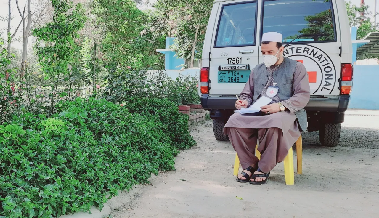 Mohammad Omar Agha, ICRC RFL field officer is registering the record of missing persons inside Mirwais Regional Hospital.