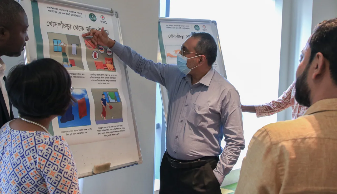 Since the beginning of 2022, the ICRC's Health Care in Detention team in Bangladesh has been training health staff, prison guards and detainees to raise awareness about scabies at the central prisons in Keraniganj, Chattogram, Cox's Bazar, Bandarban and Jessore districts. Posters explaining symptoms of scabies and preventive measures were also distributed in all 68 prisons across the country as part of the awareness programme.