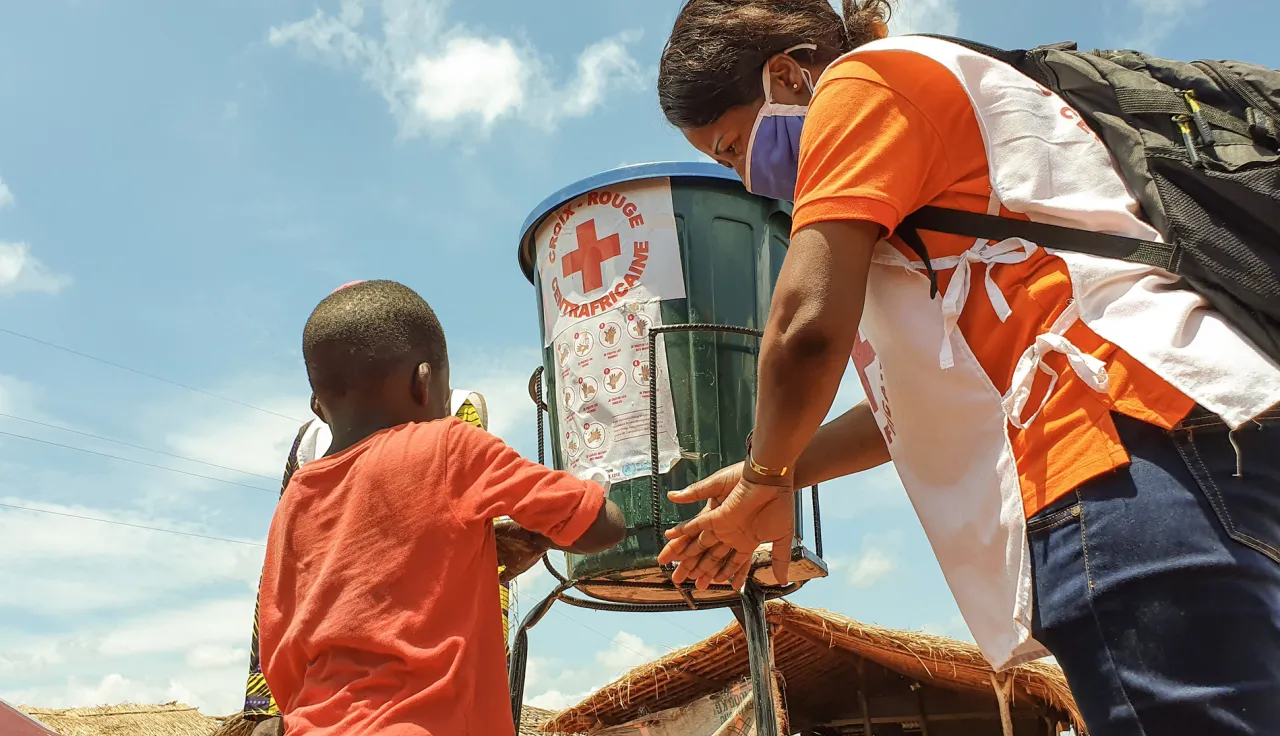 The ICRC volunteers, supported by the Central African Red Cross Society, and other members of the International Red Cross and Red Crescent Movement in the CAR, have also swung into action to raise their fellow citizens' awareness. They are of central importance to the response: on six days a week, volunteers tour districts with megaphones or in motor caravans, or they set up mobile handwashing stations near markets or sites for displaced persons. It is estimated that more than one million people have been reached through these awareness-raising activities.
