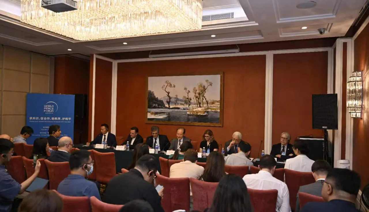 On July 2, 2023, in Beijing, China, Thierry Meyrat, the personal envoy of the ICRC president to China and head of the Regional Delegation for East Asia, delivers a speech at the panel on "The Middle East: Geopolitical Transformation and Peace in the Region" during the 11th World Peace Forum.
