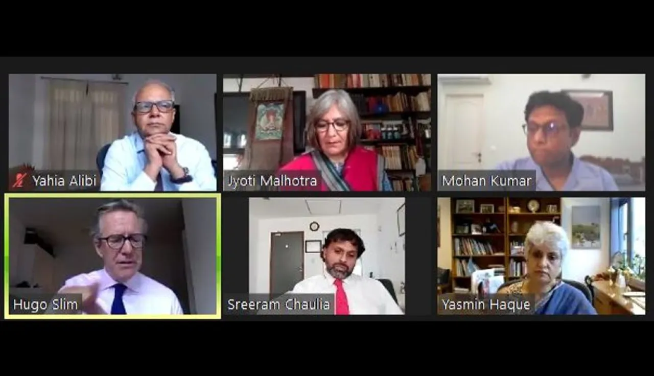 Dr Slim emphasized that the solutions for the future must be directed to fortify social security and must prioritize gender equality. Stressing on the importance of localization, Dr Slim felt the humanitarian sector needed to work towards finding a better balance between the global and local humanitarian response. Prof Mohan Kumar raised the important issue of the growing humanitarian needs and the shrinking funds available to meet those needs. He said, "The State has become extremely powerful post COVID because of its ability to intervene. COVID presents an excellent opportunity for international organisations to rise to the occasion and explore newer sources of funding." Also needing special attention are those countless people who are "practically stateless and are falling through the cracks", explained Dr Chaulia, as he stressed on their rising numbers. Dr Chaulia also emphasized the role India has been playing in providing humanitarian assistance to not only its neighbours, but also globally.