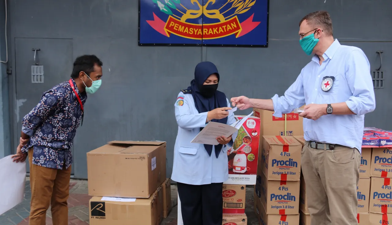Jakarta (ICRC) – Ramping up its response to COVID-19, the International Committee of the Red Cross (ICRC), in coordination with the Directorate General of Prisons of the Ministry of Law and Human Rights, finished today the distribution of hygiene and protection material in 45 places of detention in West Java and Banten provinces, military detention centres in Jakarta, West and East Java, and military hospital in Jakarta and West Java. The distribution, carried out to support the Indonesian authorities in controlling the spread of COVID-19, took place from 18 to 22 May.