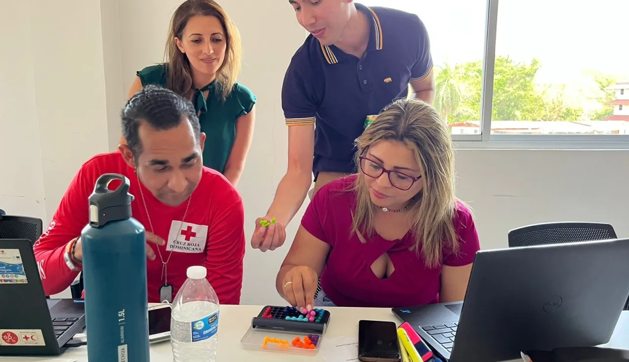 Volunteers of the Panamanian Red Cross and the Dominican Red Cross ready to use the tool “Family Links”.