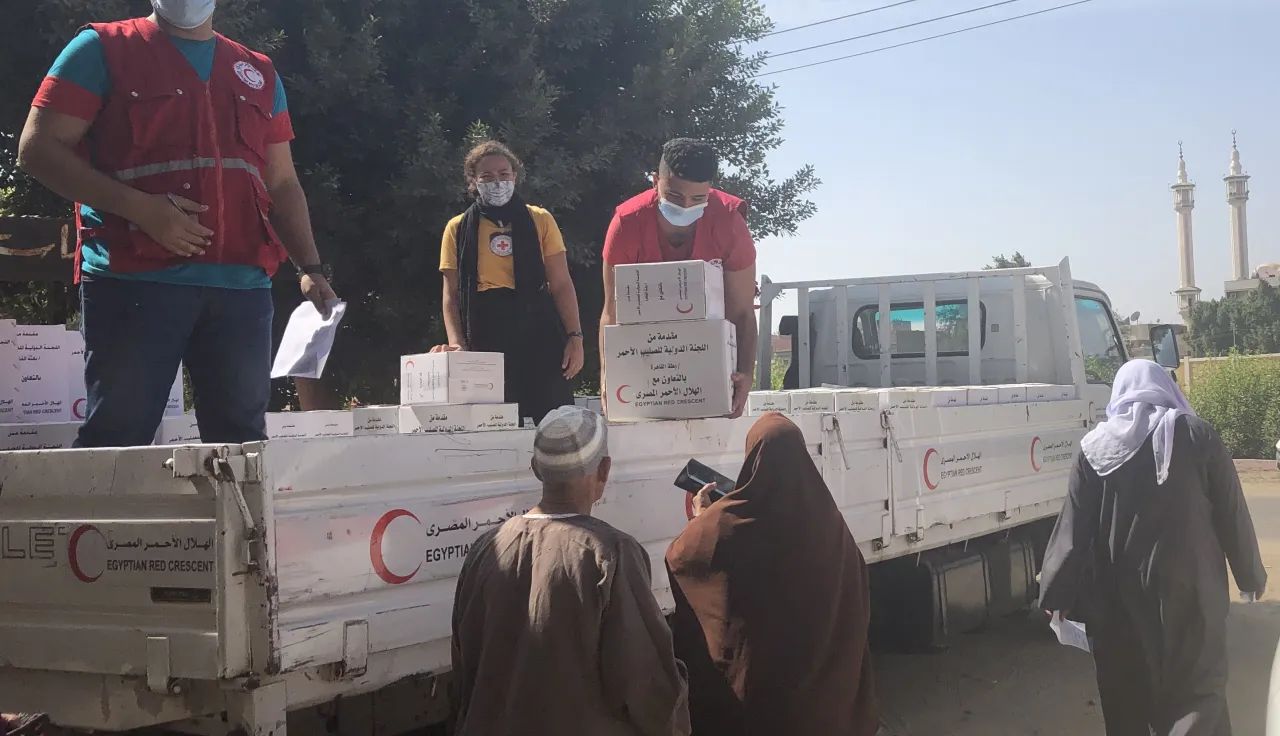 The aid was distributed in the governorates of Giza, Qalyoubia, Menoufia, Beni Suef, Alexandria Marsa Matrouh, Qena, Luxor, Aswan and New Valley. Teams from the ERC and ICRC also held awareness sessions during the distribution missions on how to protect oneself from COVID-19 and to curb the spread of the virus.
