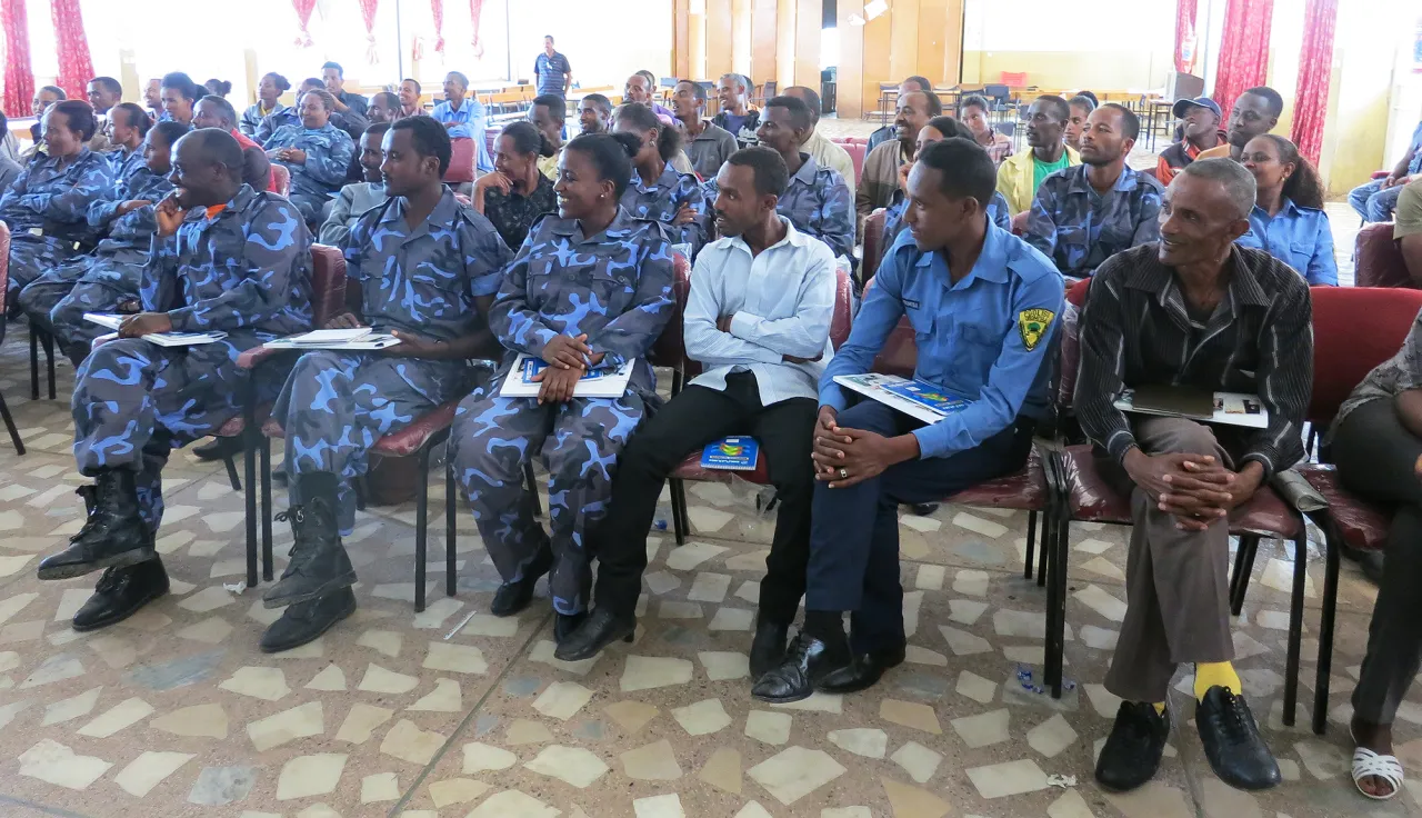 The ICRC is actively promoting humanitarian principles for police forces in Ethiopia. In 2014, more than 2,000 members of federal and regional police forces, mainly crime prevention/investigation and riot control officers, members of special security forces and prison guards from Benishangul-Gumuz, Amhara Oromia, Tigray, SNNP and Addis Ababa regions, participated in sessions organized jointly with the respective regional police training centres. A two-day round-table discussion was also organized for 29 heads of police training centres.