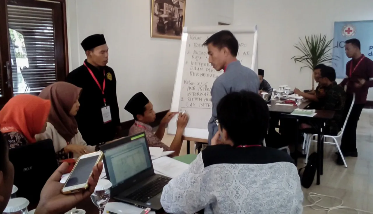 At the heart of the flourishing relationship is "Akhlak Kemanusiaan" (AK), a modified version of the ICRC's Exploring Humanitarian Law (EHL), a teaching resource pack for teachers to introduce students between ages 13 and 18 to the basic rules of international humanitarian law (IHL). In late September, a team from the ICRC Jakarta jointly organized a workshop with the Nadhlatul Ulama Islamic Institute (IAINU), a leading university in the city of Kebumen, Central Java, with the aim of exploring how AK modules could be incorporated into existing or future teachings plans.