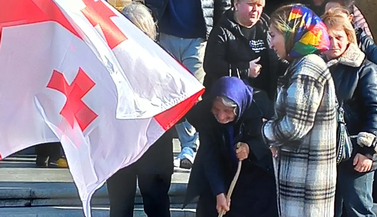Relatives set up a chair for Eteri Zedginidze in the yard of Sameba Cathedral, where a public farewell was organized. Frail because of her age and health, she mustered all her strength to get up and say a final goodbye to her son and others whose remains were also identified as their coffins were being taken from the cathedral.