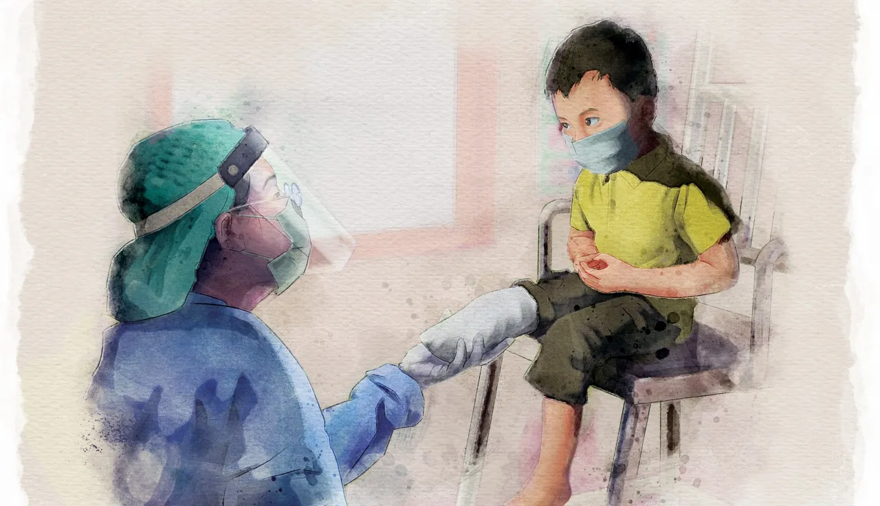 This three-year-old from Myitkyina, Kachin State was born with a lower limb deficiency. He was able to get a replacement for his prosthetic leg at the Myitkyina Physical Rehabilitation Centre, which reopened in line with COVID-19 guidelines.