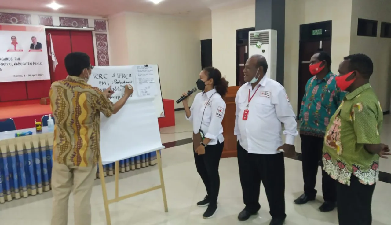 Jakarta (ICRC) – In support of strengthening the capacity of the Indonesian Red Cross (Palang Merah Indonesia/PMI) at the provincial and district level, the International Committee of the Red Cross (ICRC) Regional Delegation to Indonesia and Timor-Leste together with the PMI organized a series of orientation and dissemination sessions on humanitarian values and Red Cross principles to the board members of PMI from 12 regencies in the province of Papua. These sessions were held in Jayapura and Nabire on 6-9 April 2021.