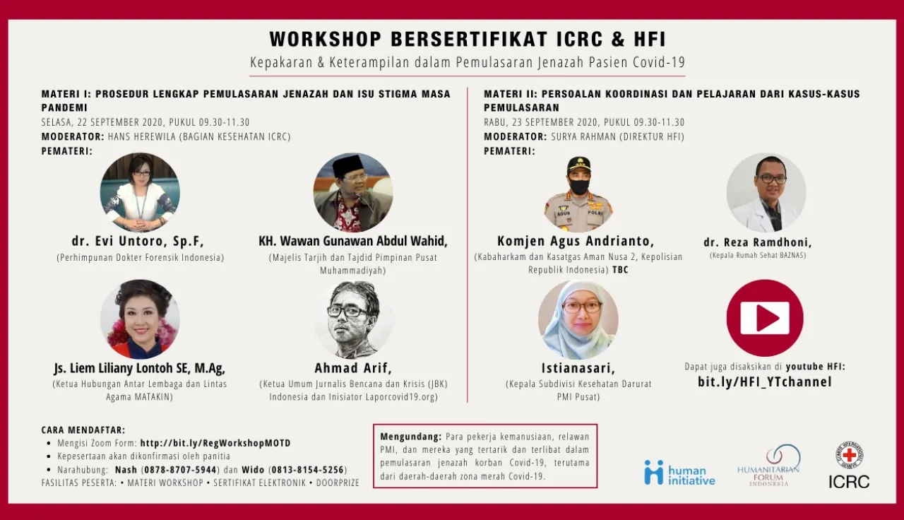More than 300 volunteers from across Indonesia learned how to safely manage the bodies of COVID-19 victims while respecting traditional religious practice in an online workshop held on 23rd and 24th of September 2020. The workshop, organized by the International Committee of the Red Cross (ICRC) together with Humanitarian Forum Indonesia (HFI) and Human Initiative (HI), helped tackle the stigma and confusion that has often accompanied the response to the pandemic.