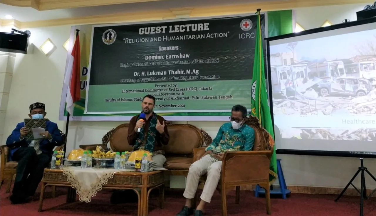 Understanding Alkhairaat's significance and having supported various universities in either integrating or inserting elements of "IHL and Islamic Law" into their respective curriculums, the International Committee of the Red Cross (ICRC) paid a two-day visit to Alkhairaat from November 3-4, 2021 to further build their capacity through partaking in discussions on Islamic Law related to armed conflict, its convergence with International Humanitarian Law (IHL), and integrating the topic of "IHL and Islamic Law" into their curriculum.